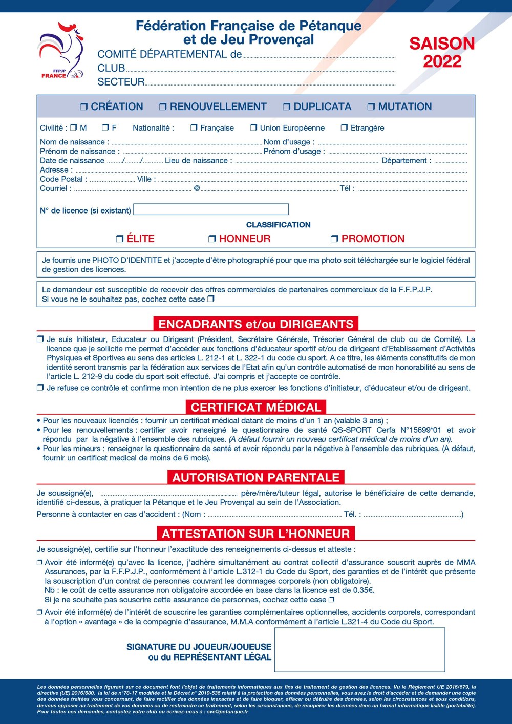 DEMANDE DE LICENCE